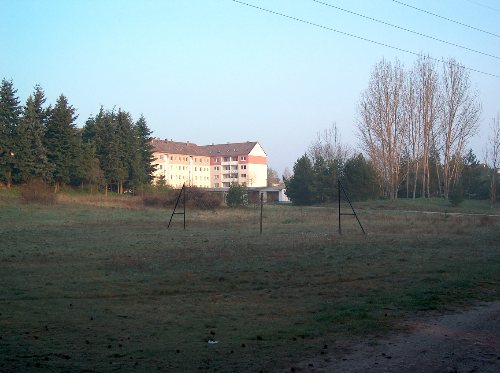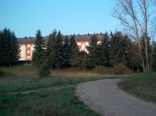 ... ein morgen im Mai..wer einen Hund hat der muss auch früh schon spazieren gehen.Blick auf den Wohnblock (40WE) vom Kiefernweg aus