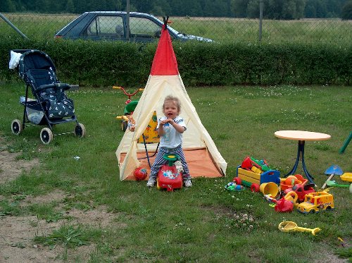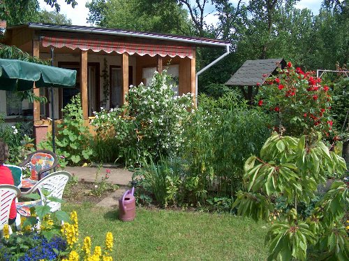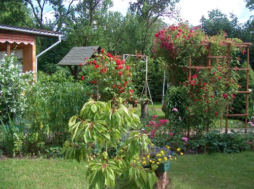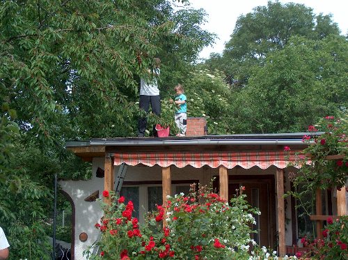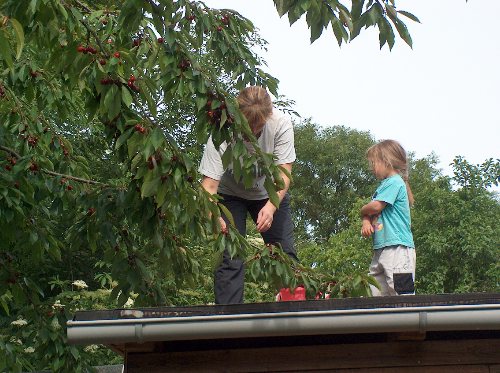 Kirschenernte 2004... bequem von Dach des Bungalows