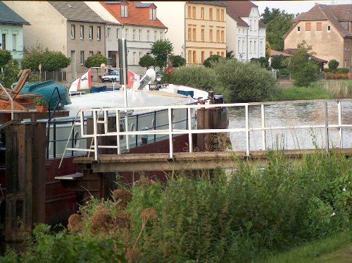 ... Blick über die Anlegestelle unter der Brücke hindurch...